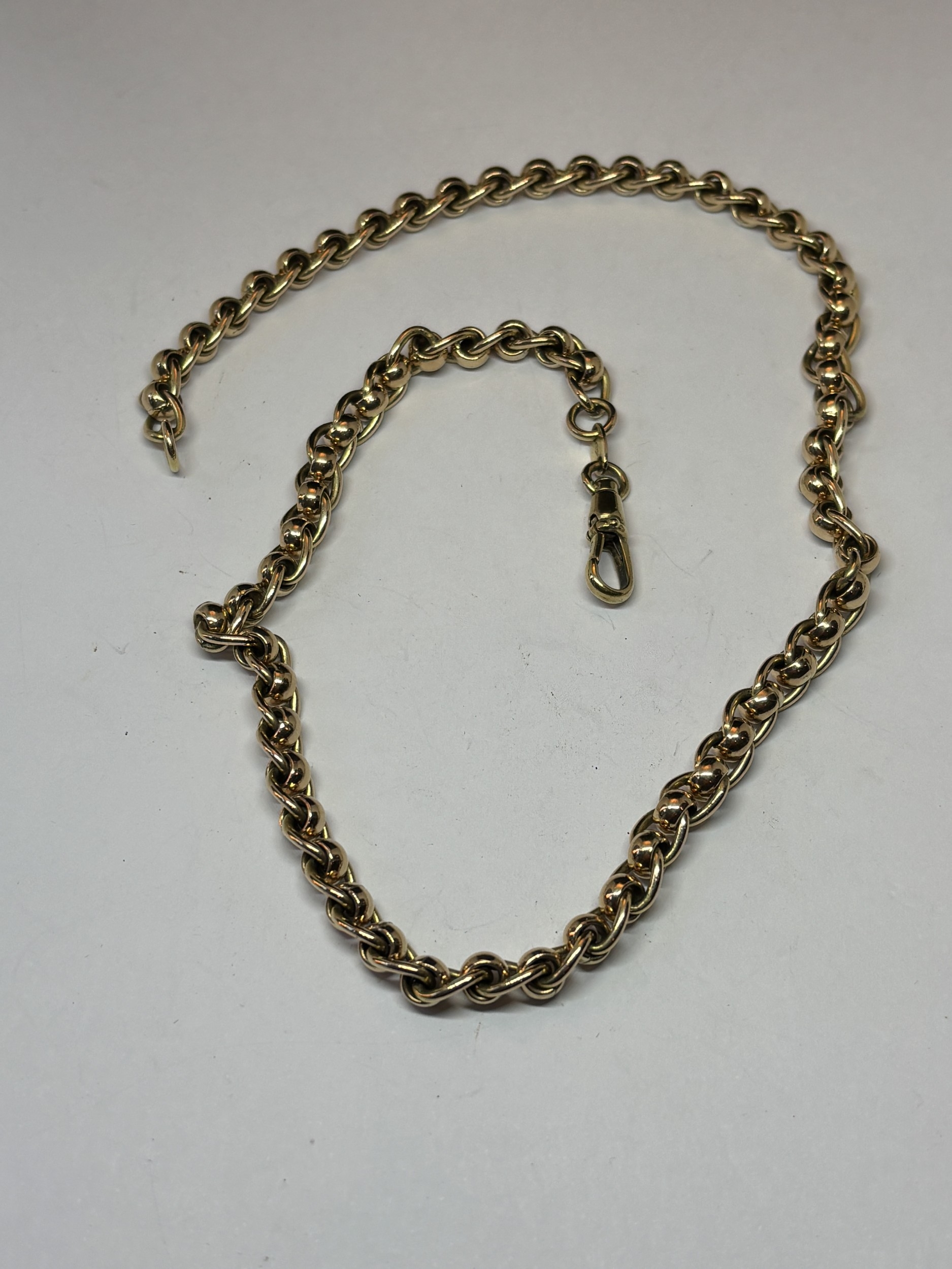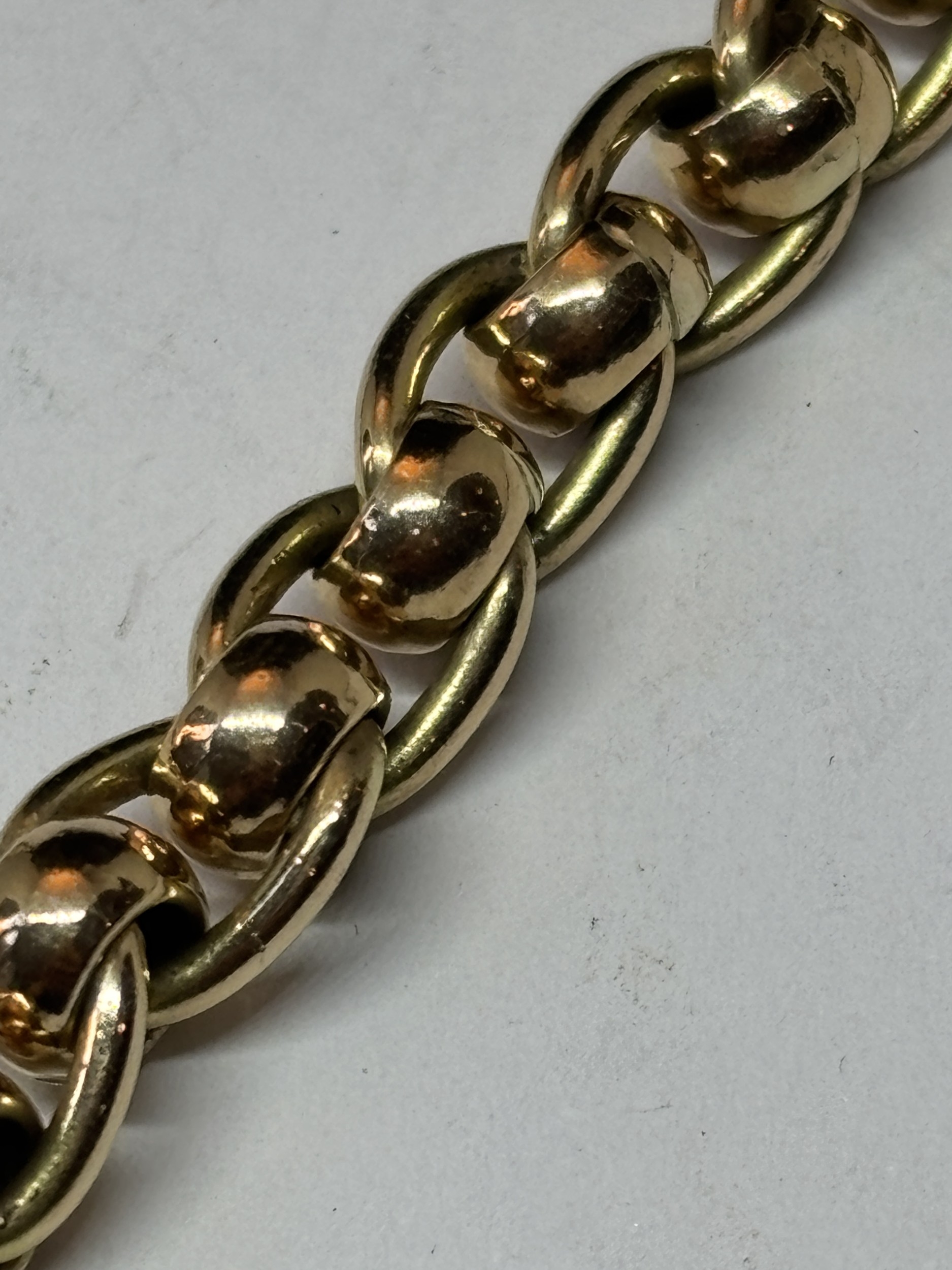 A MARKED 9 CARAT GOLD BELCHER CHAIN NECKLACE WITH CLIP FASTEN GROSS WEIGHT 61.4 GRAMS