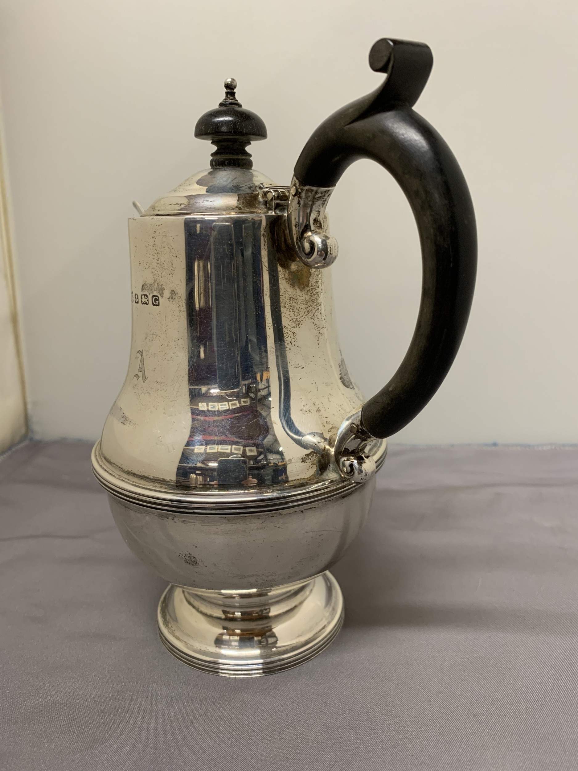 A HALLMARKED BIRMINGHAM SILVER LIDDED JUG, GROSS WEIGHT 374.25G