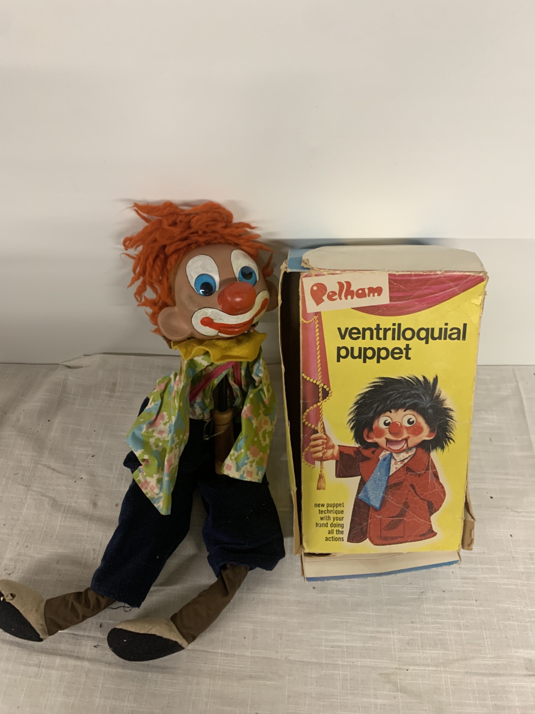 A VINTAGE PELHAM VENTRILOQUIAL PUPPET, V7 CLOWN IN ORIGINAL BOX