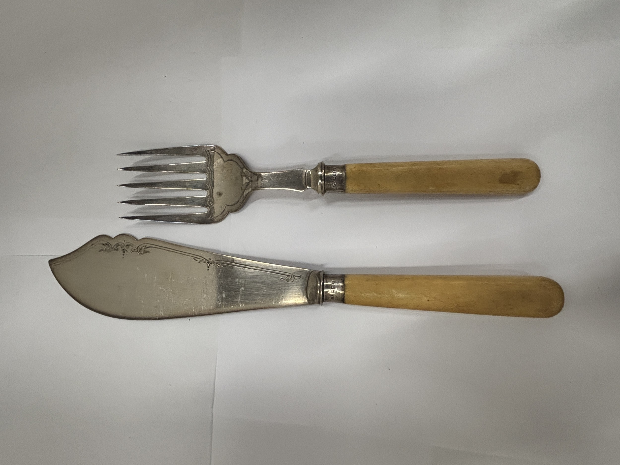 A SERVING SET WITH HALLMARKED SHEFFIELD COLLARS