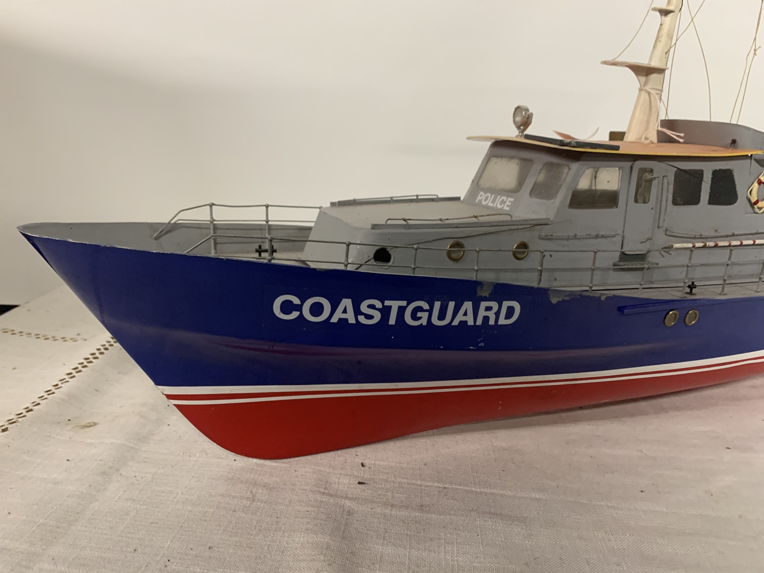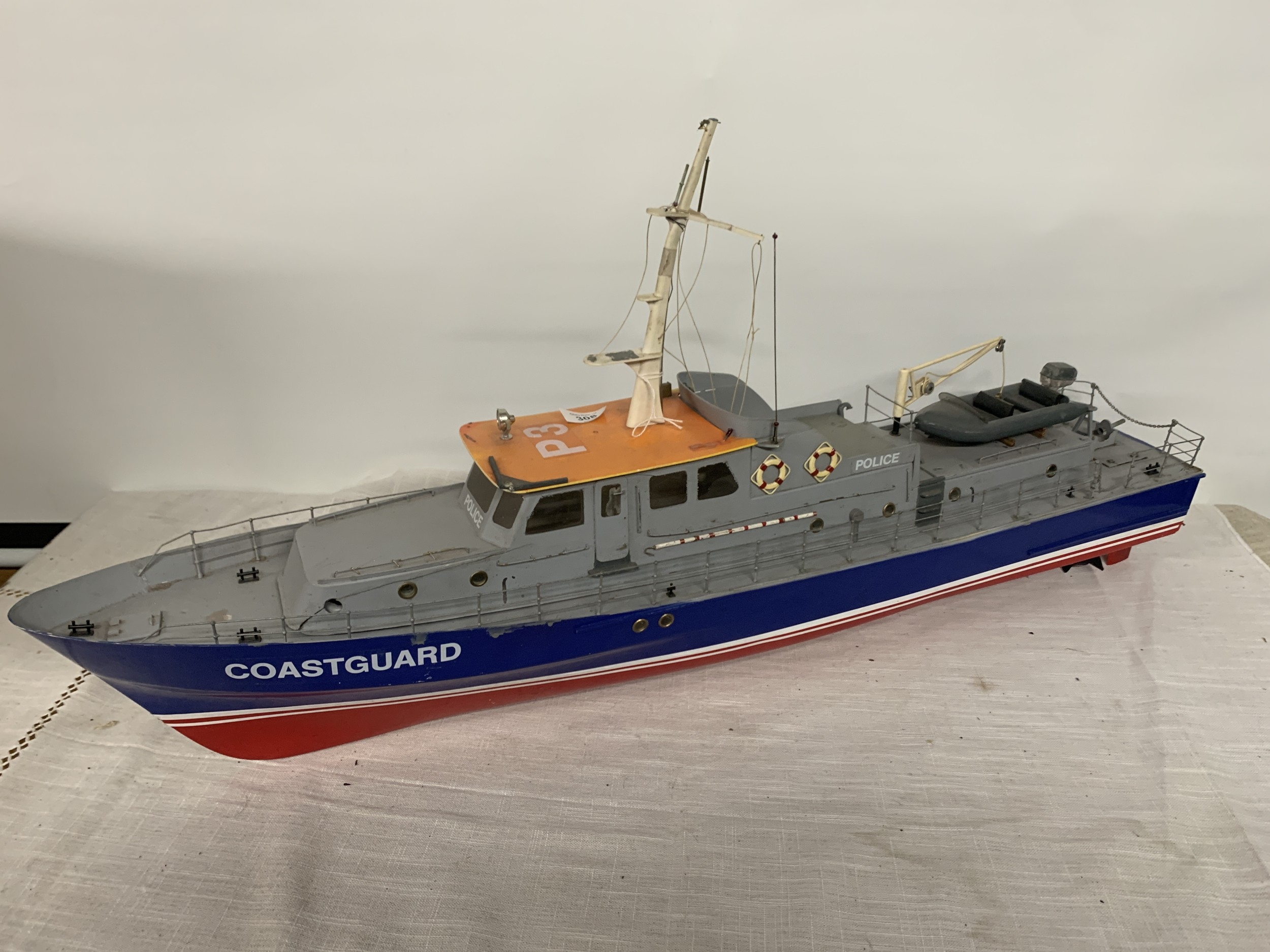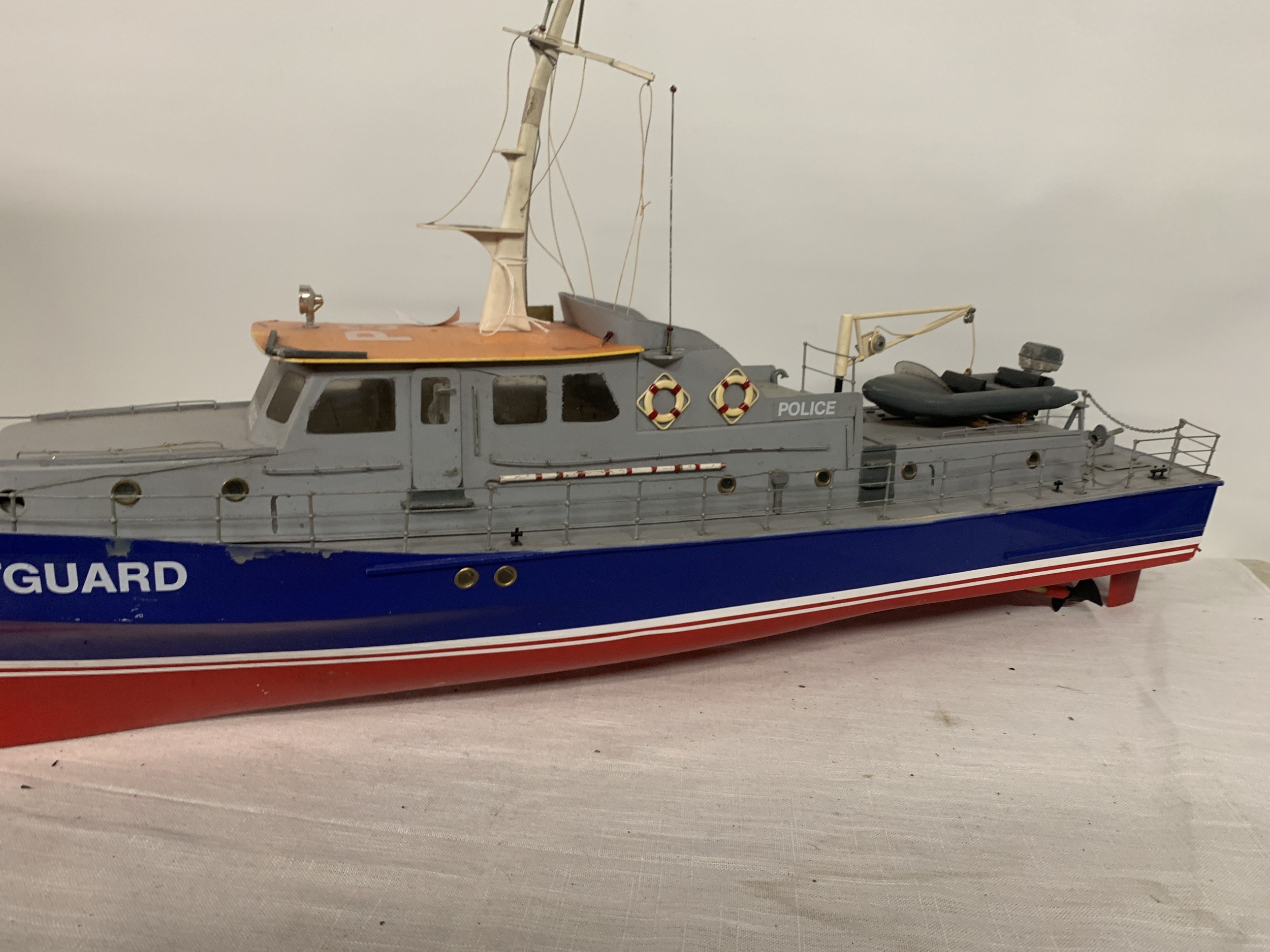 A LARGE MODEL OF A POLICE COASTGUARD BOAT, LENGTH 92CM, HEIGHT 43CM