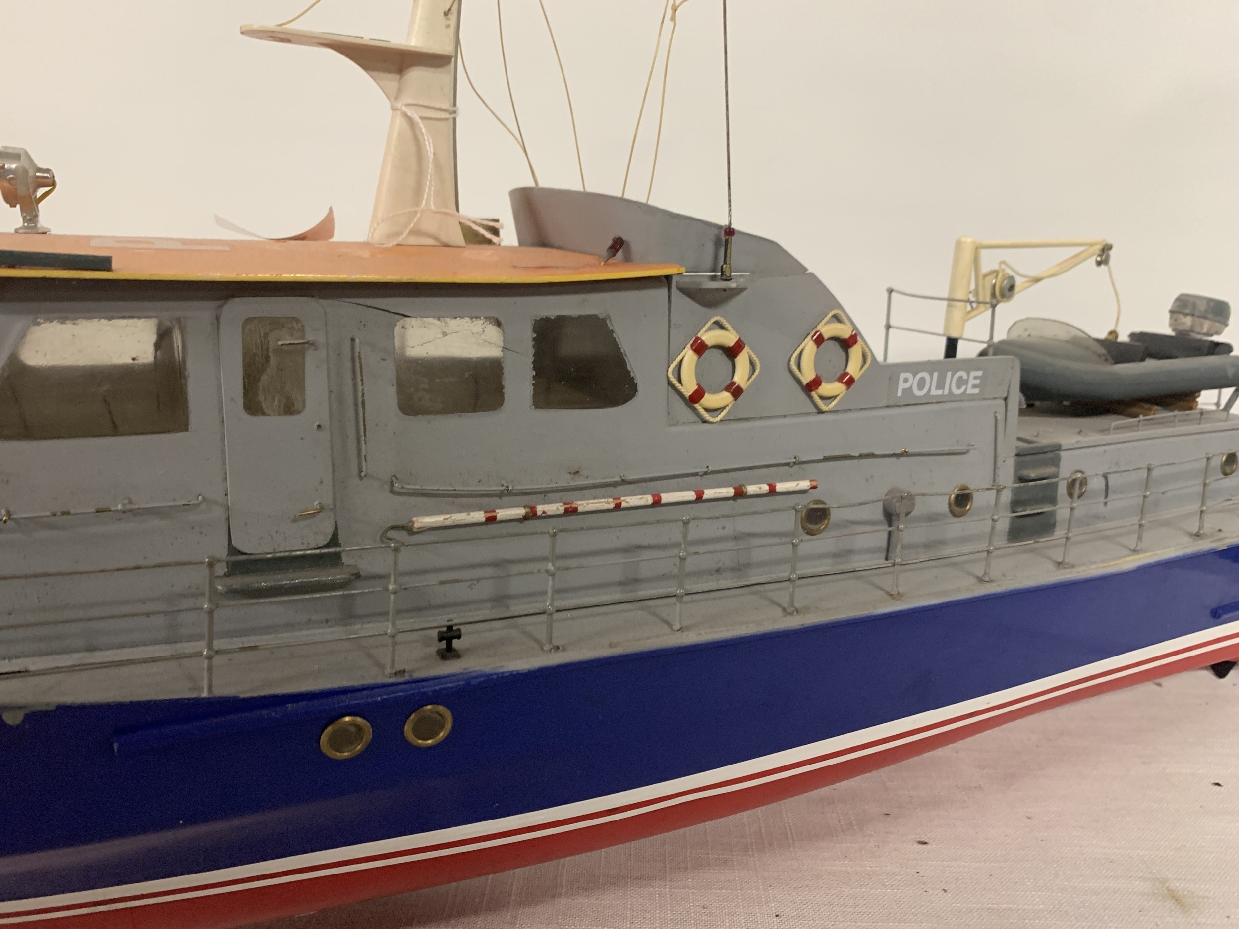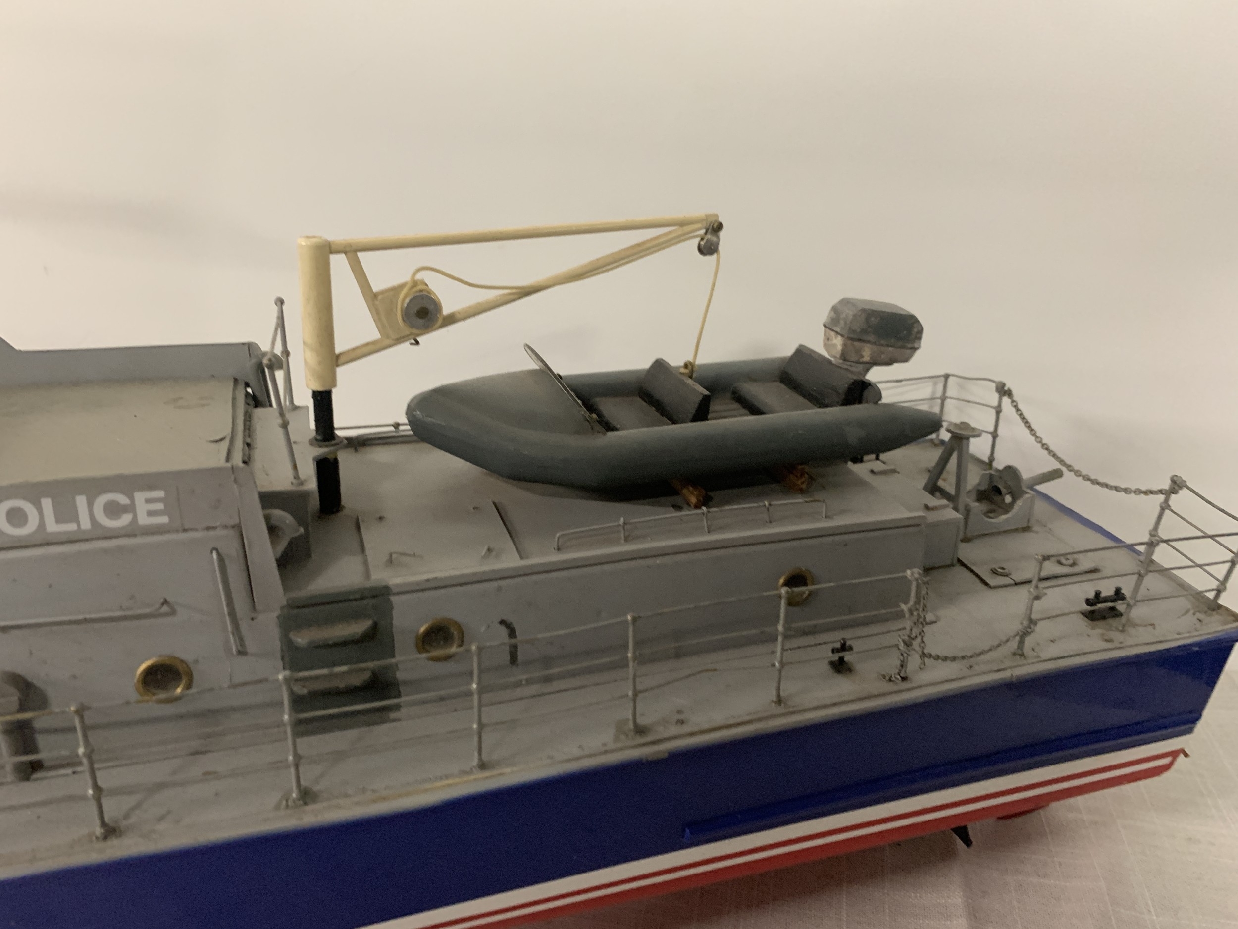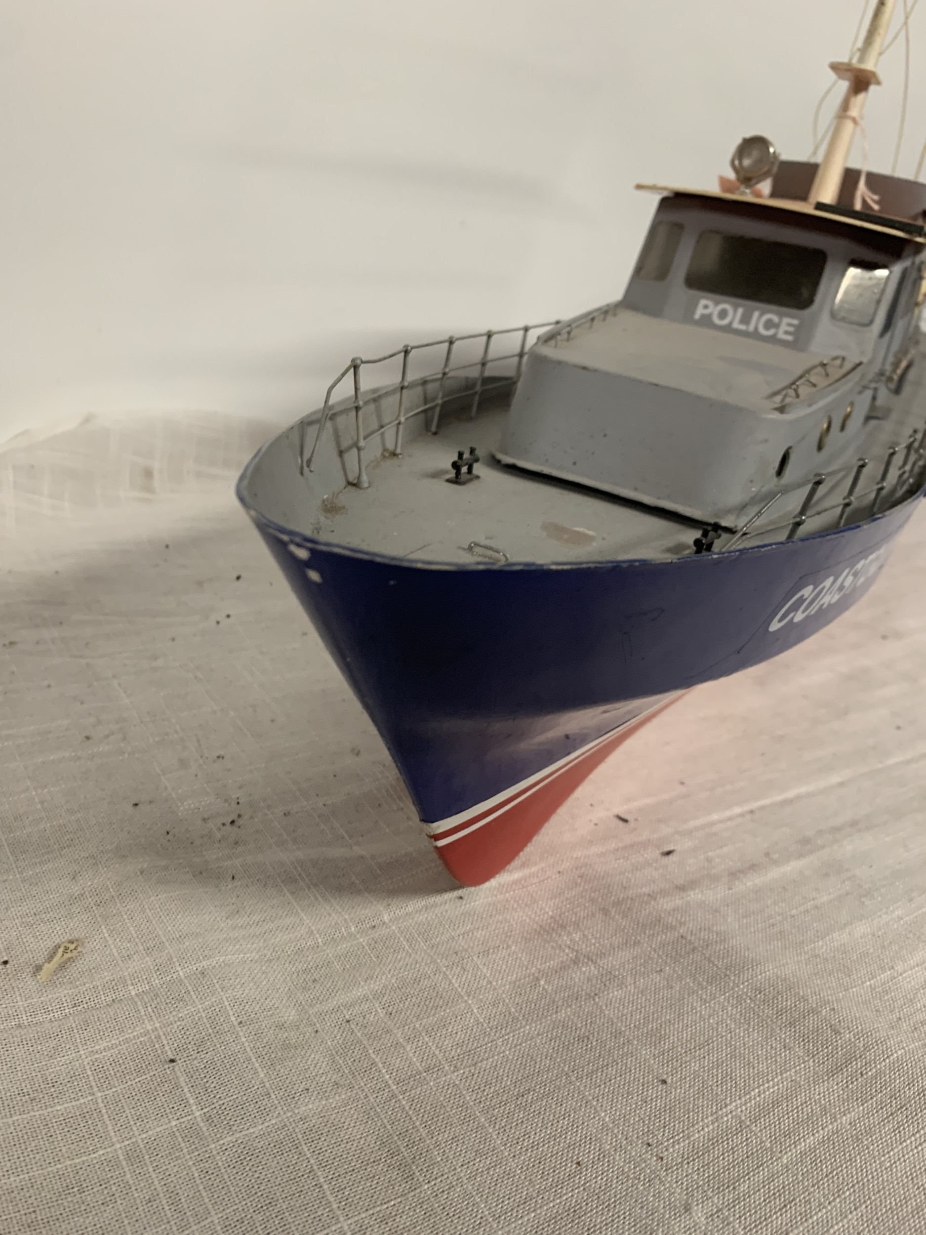 A LARGE MODEL OF A POLICE COASTGUARD BOAT, LENGTH 92CM, HEIGHT 43CM