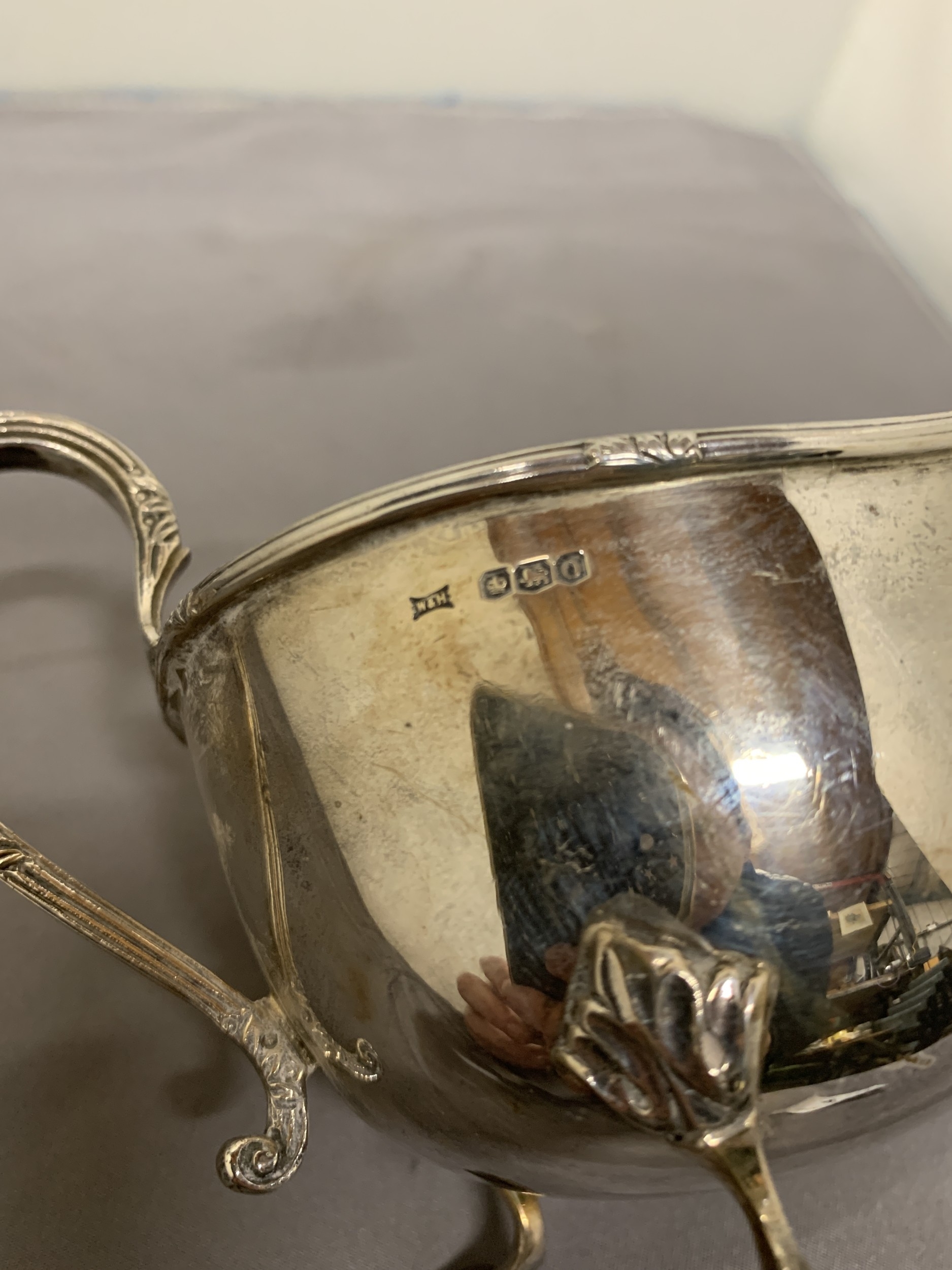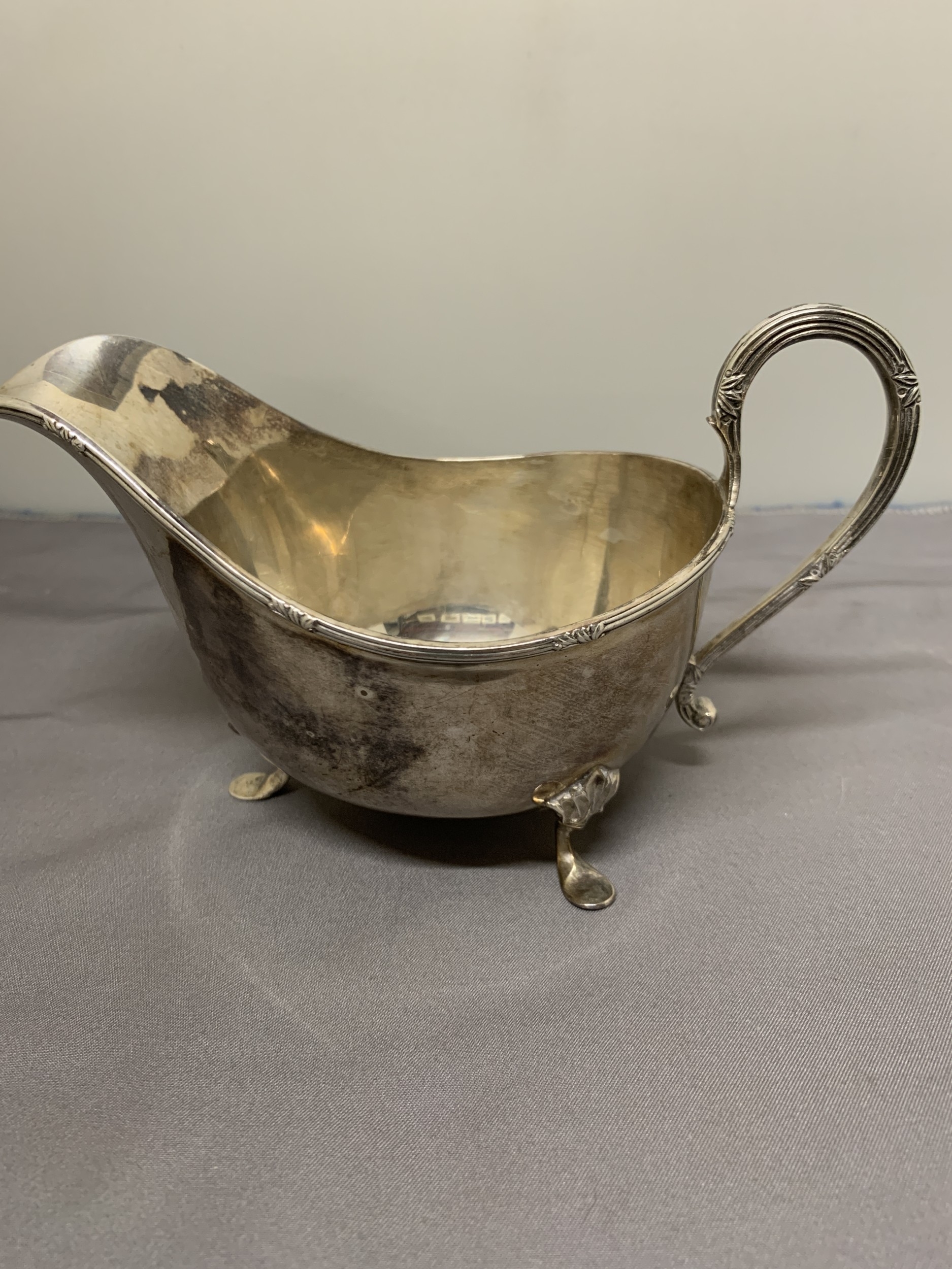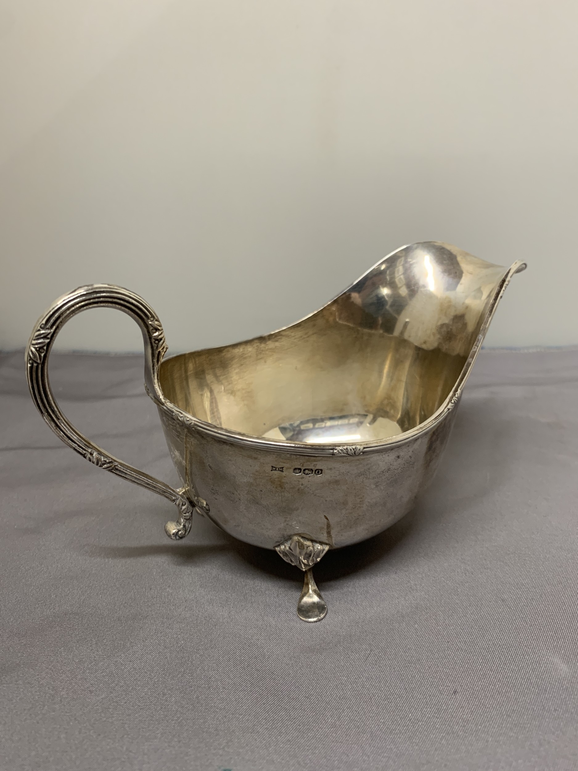A WALKER AND HALL, HALLMARKED SHEFFIELD SILVER JUG, WEIGHT 148.60