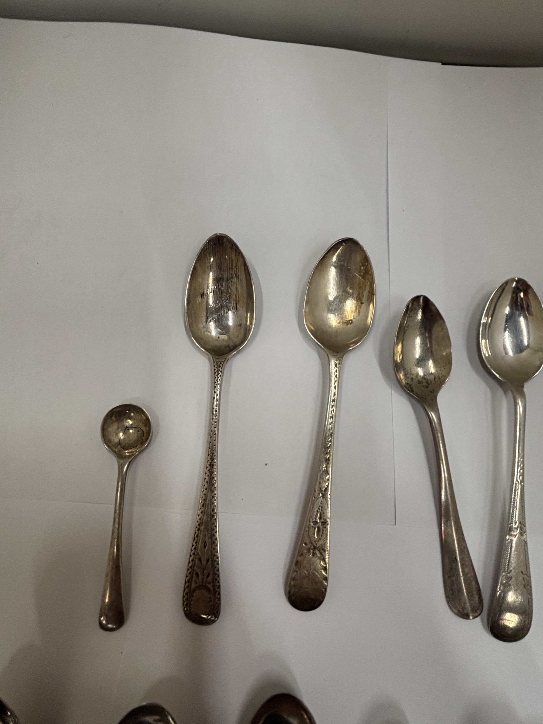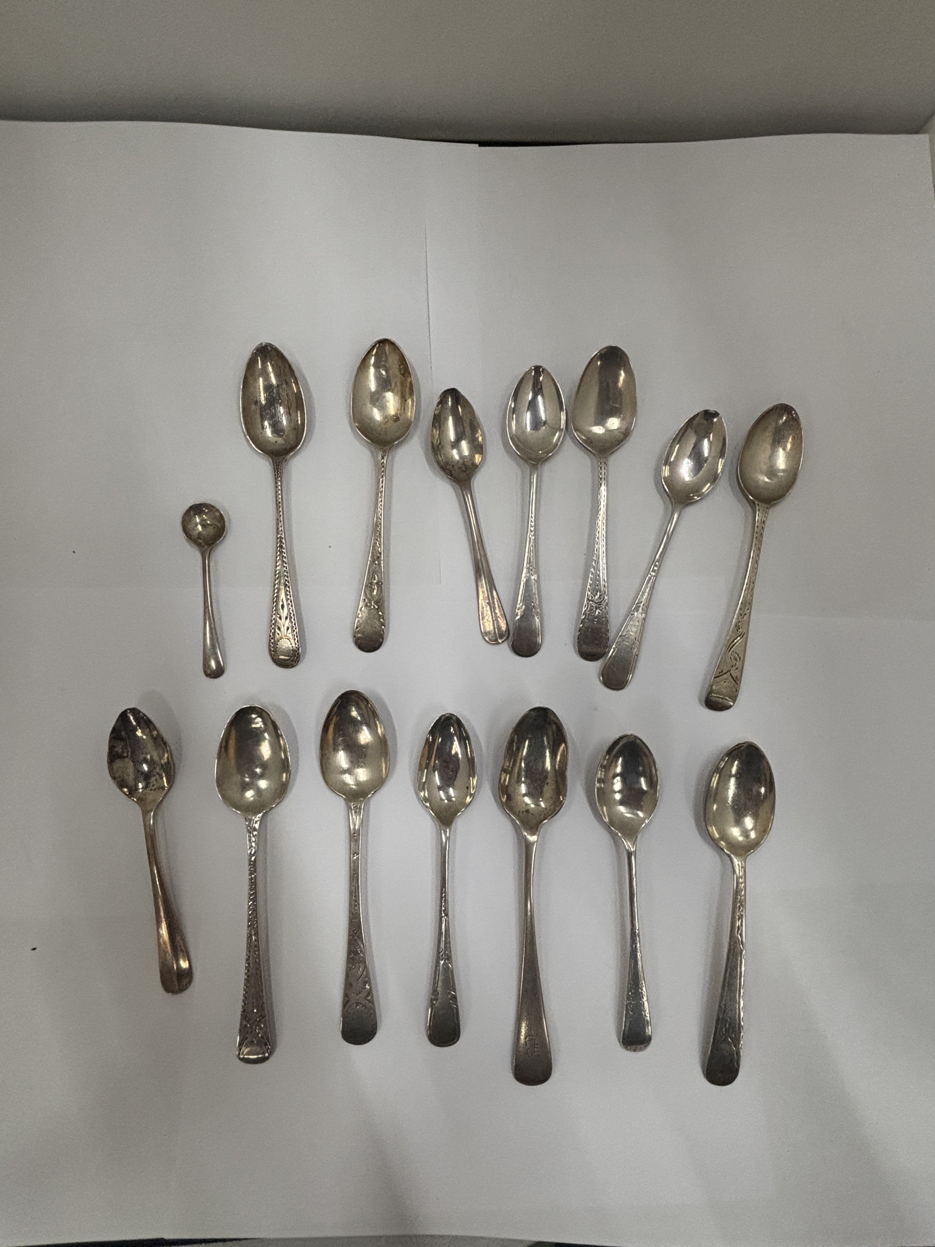 FIFTEEN HALLMARKED SILVER SPOONS, WEIGHT 160G