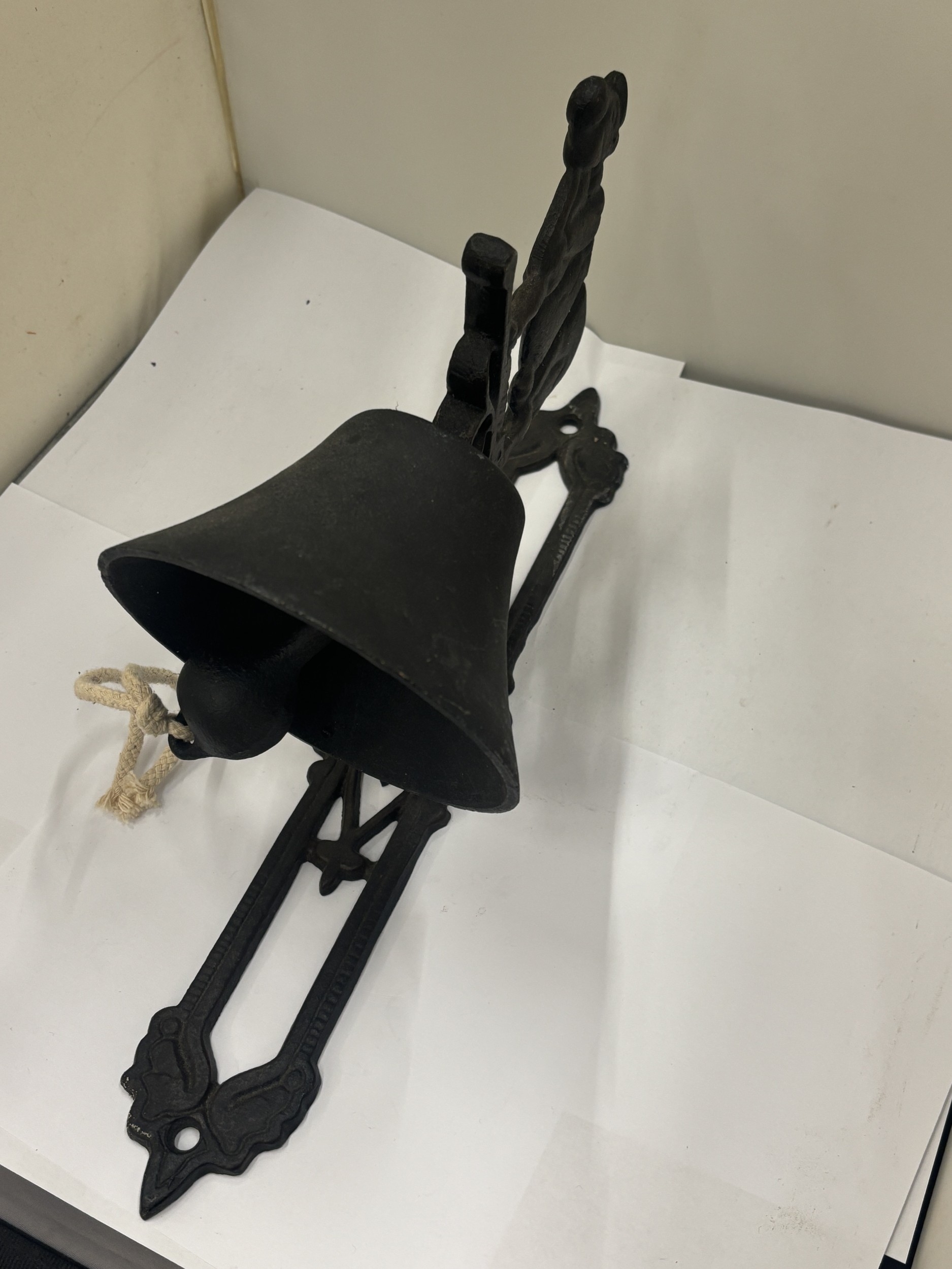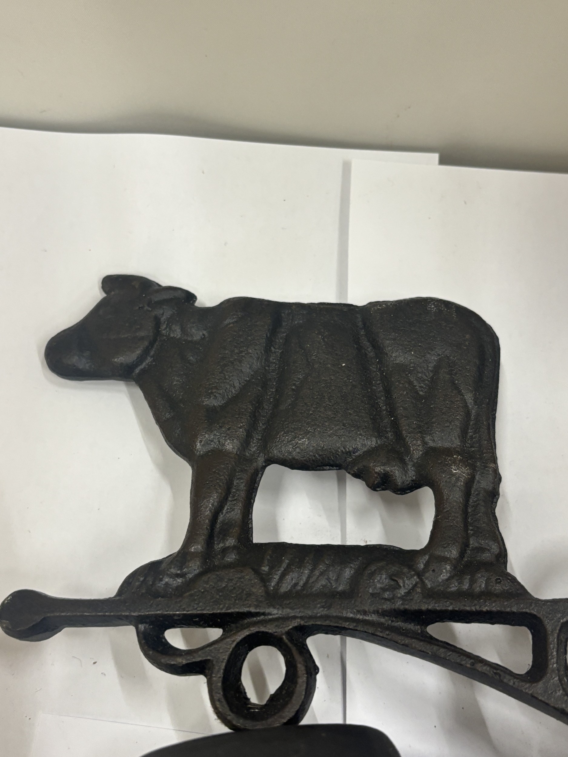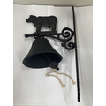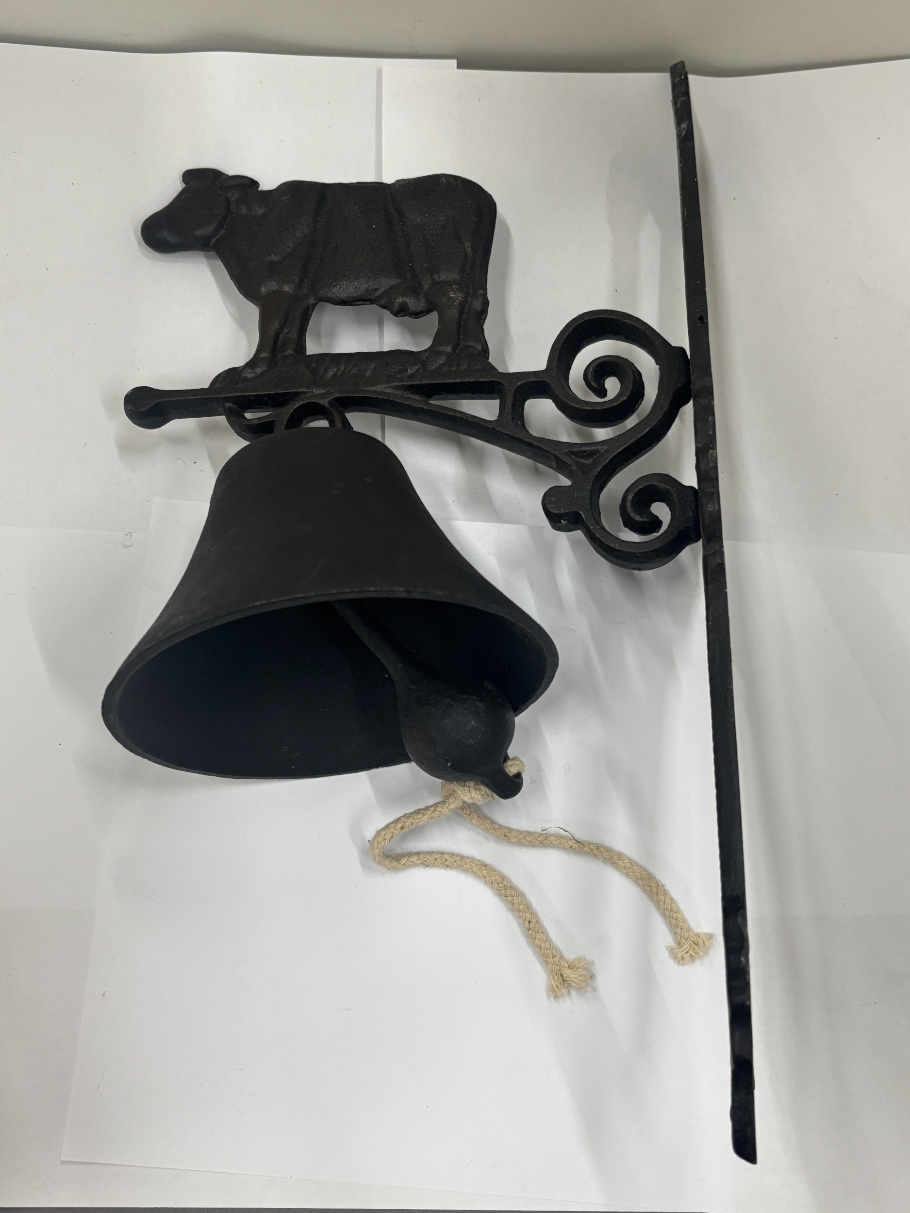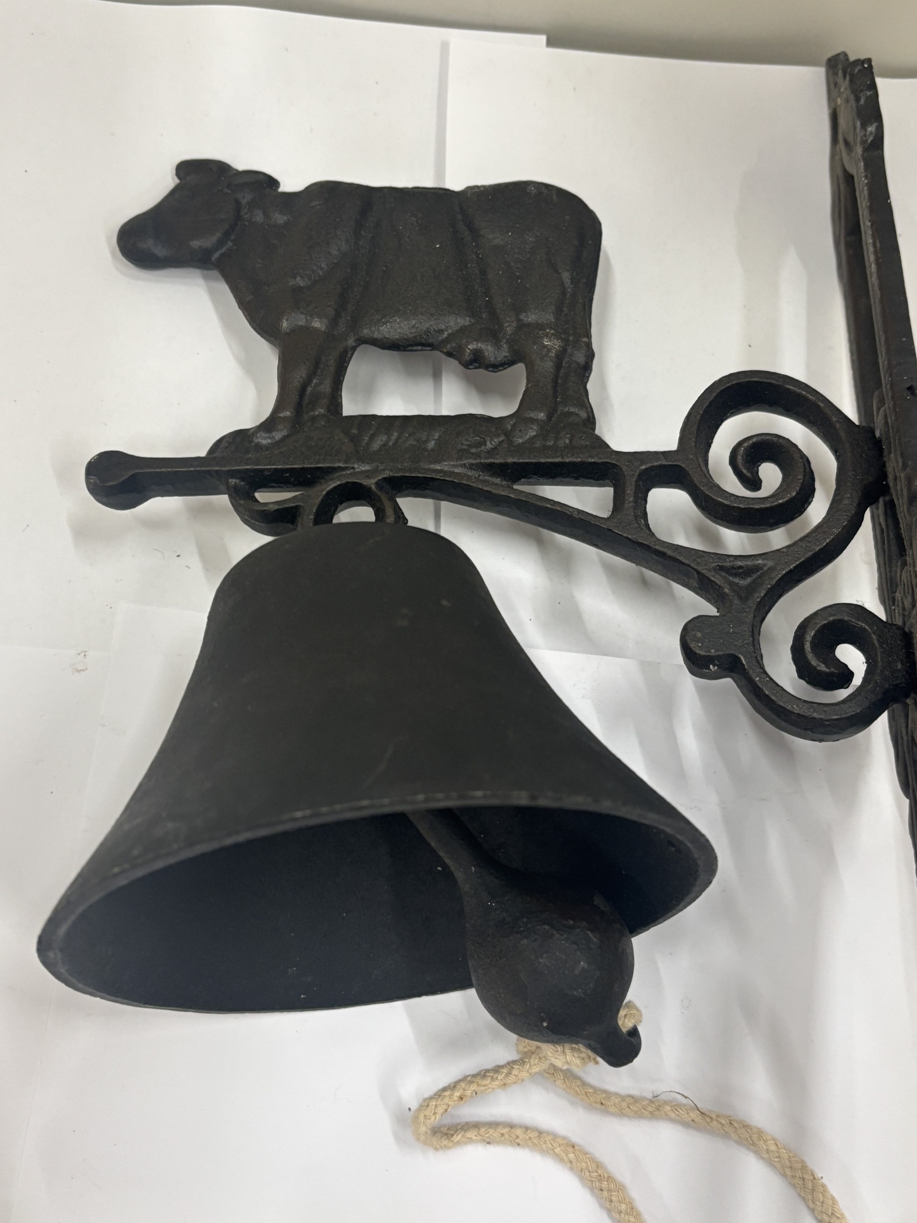 A CAST COW THEMED WALL HANGING BELL, HEIGHT 36CM