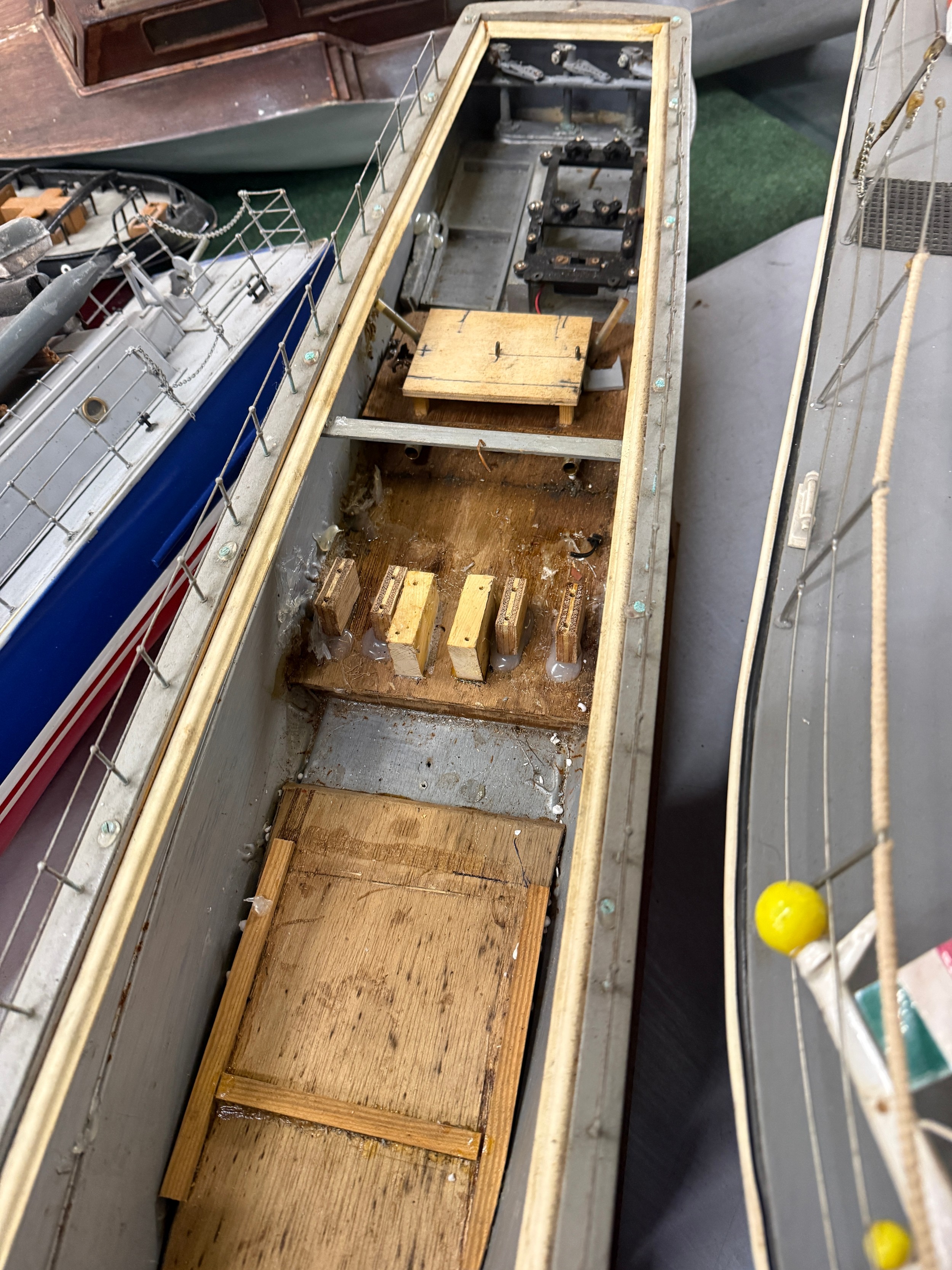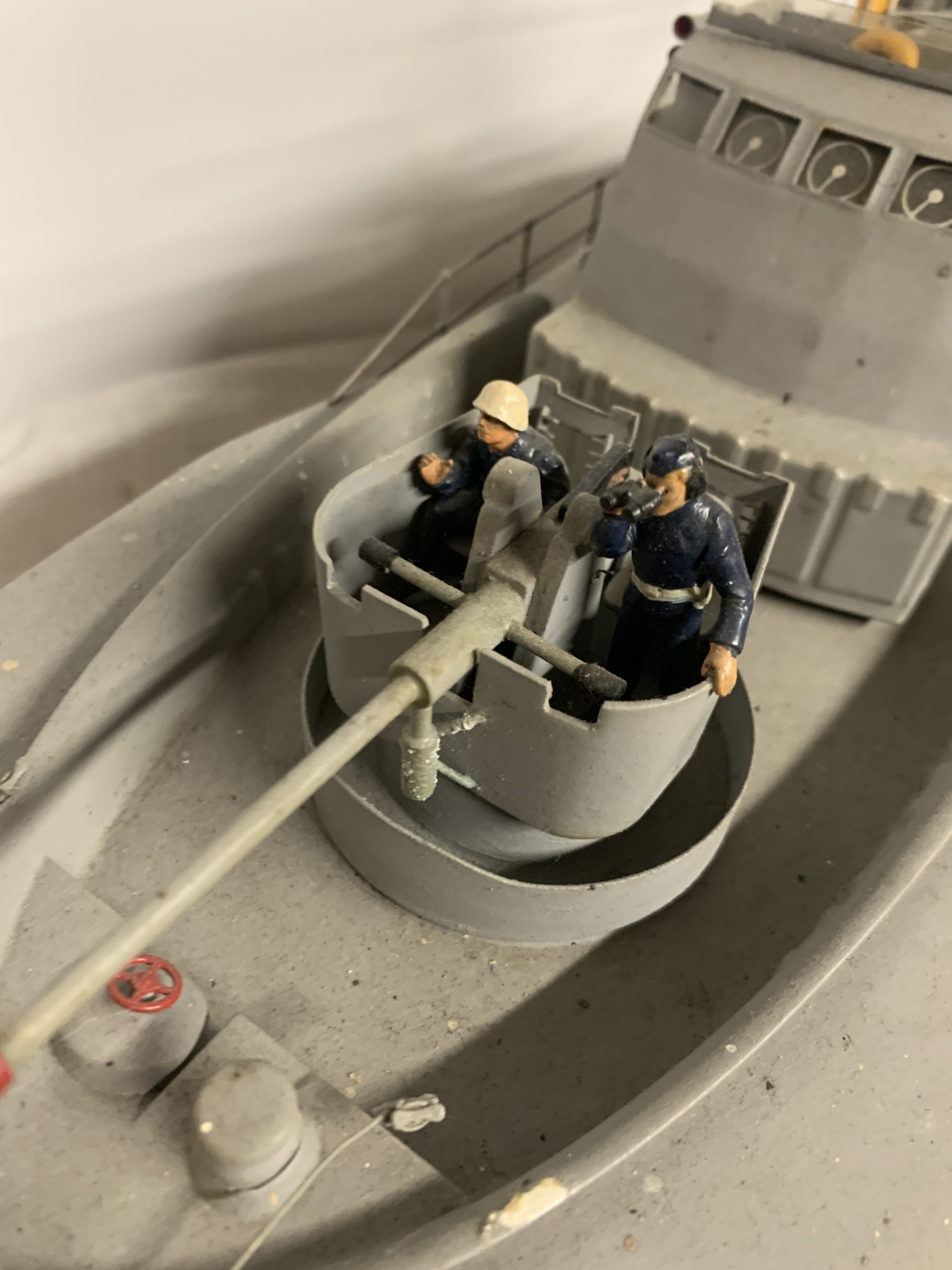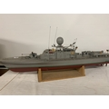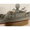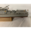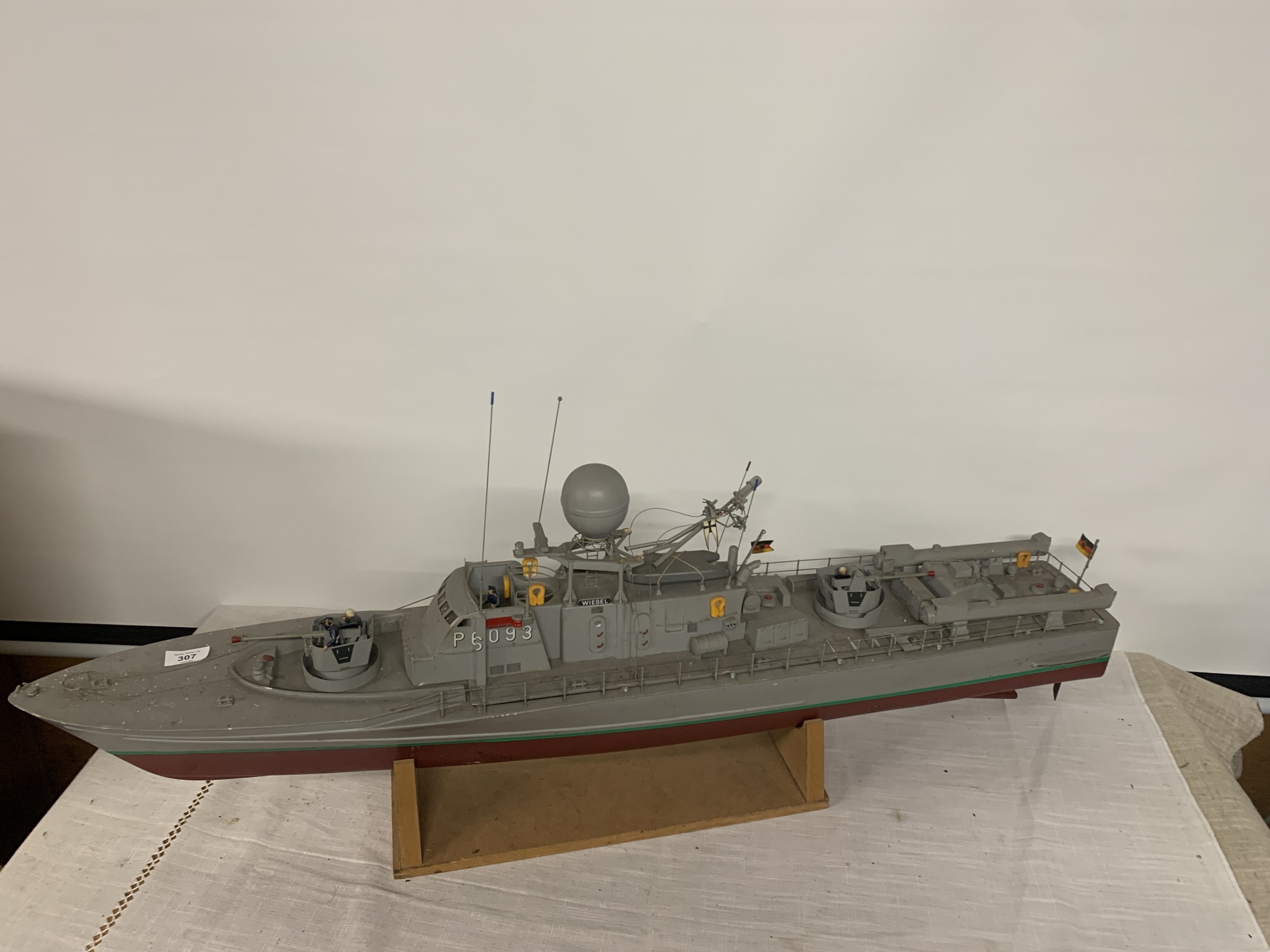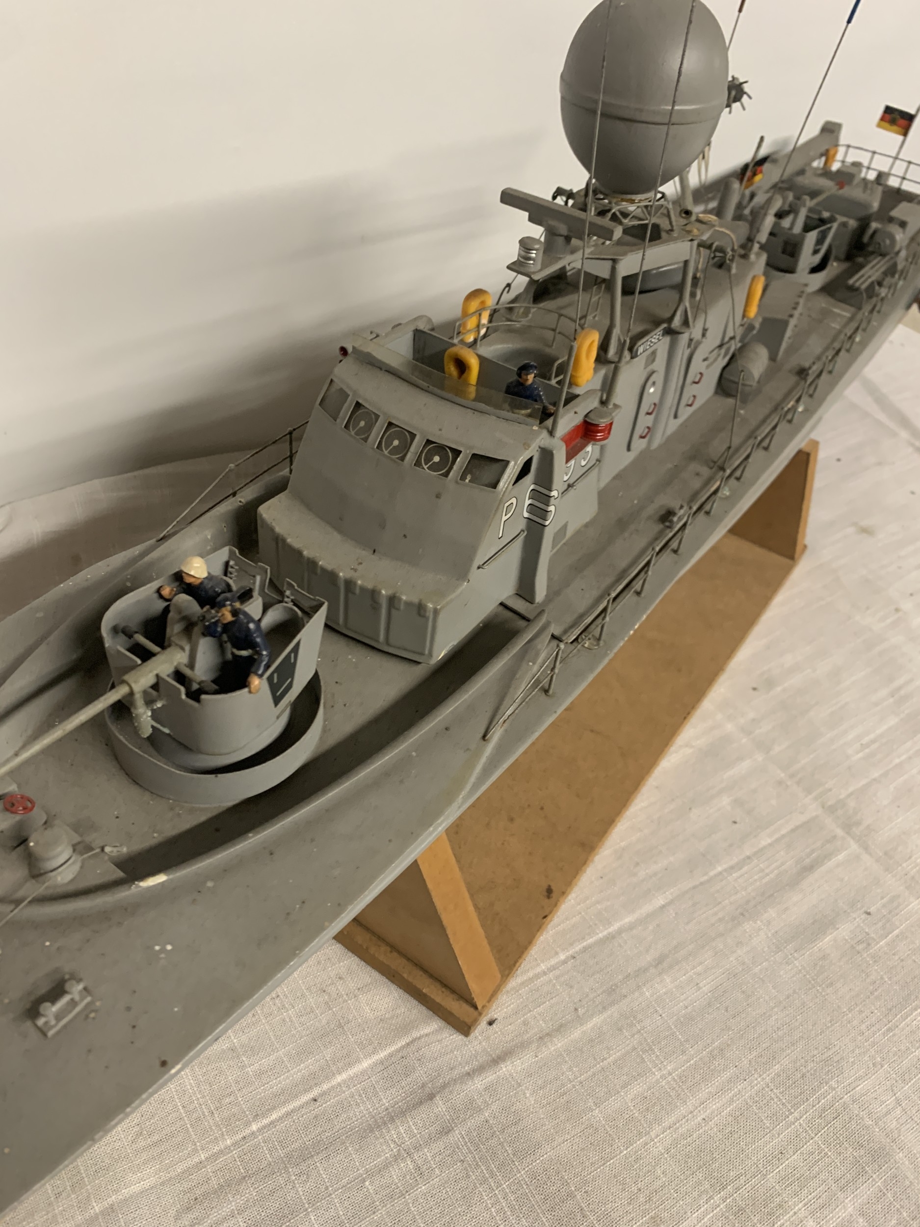 A LARGE MODEL OF A GERMAN NAVY S-100 CLASS TORPEDO BOAT, THE 'WEISEL', LENGTH 107CM, HEIGHT 37CM WITH WOODEN BASE