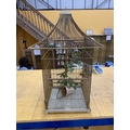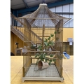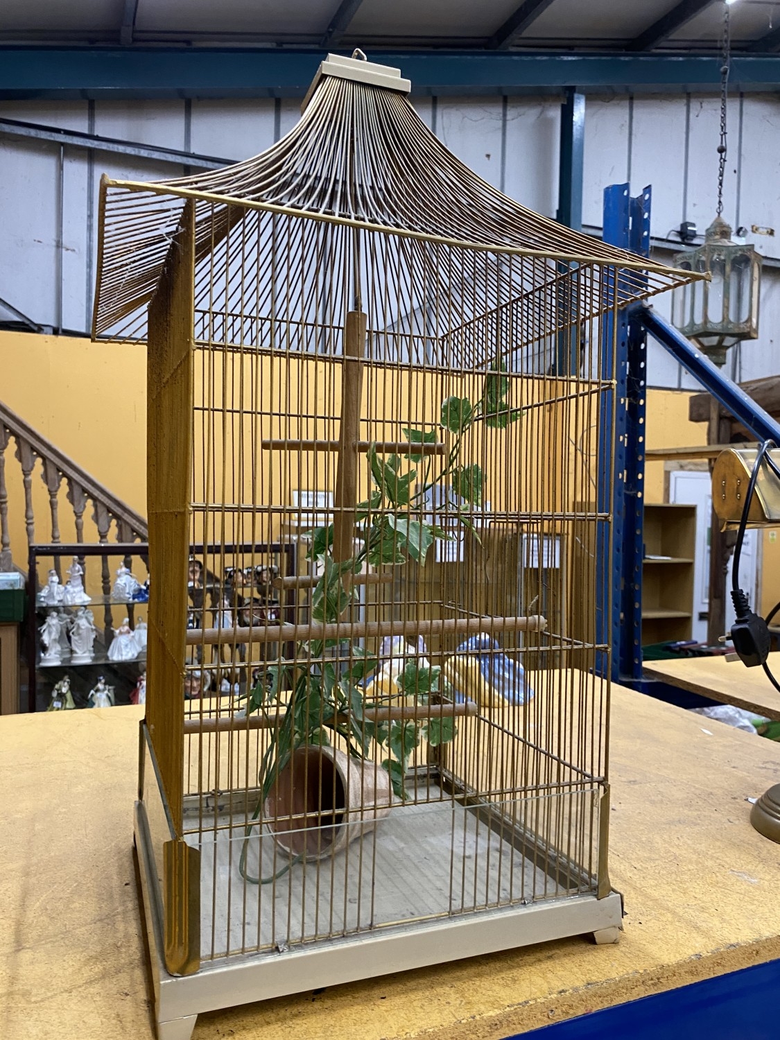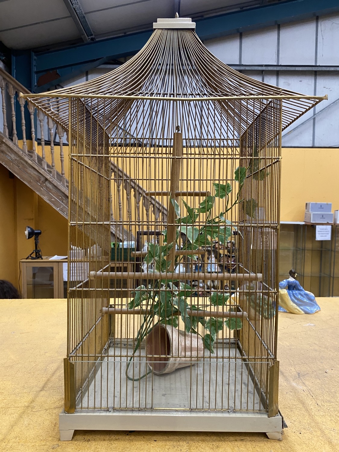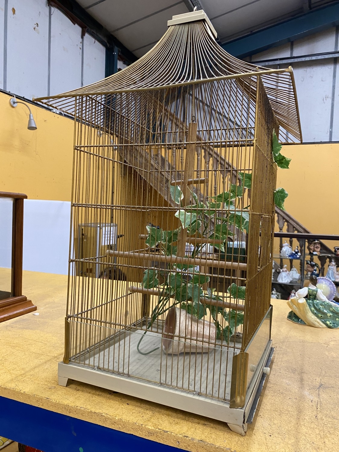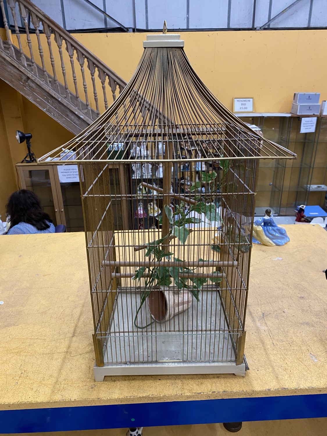 A PAGODA STYLE METAL BIRD CAGE, HEIGHT 70CM