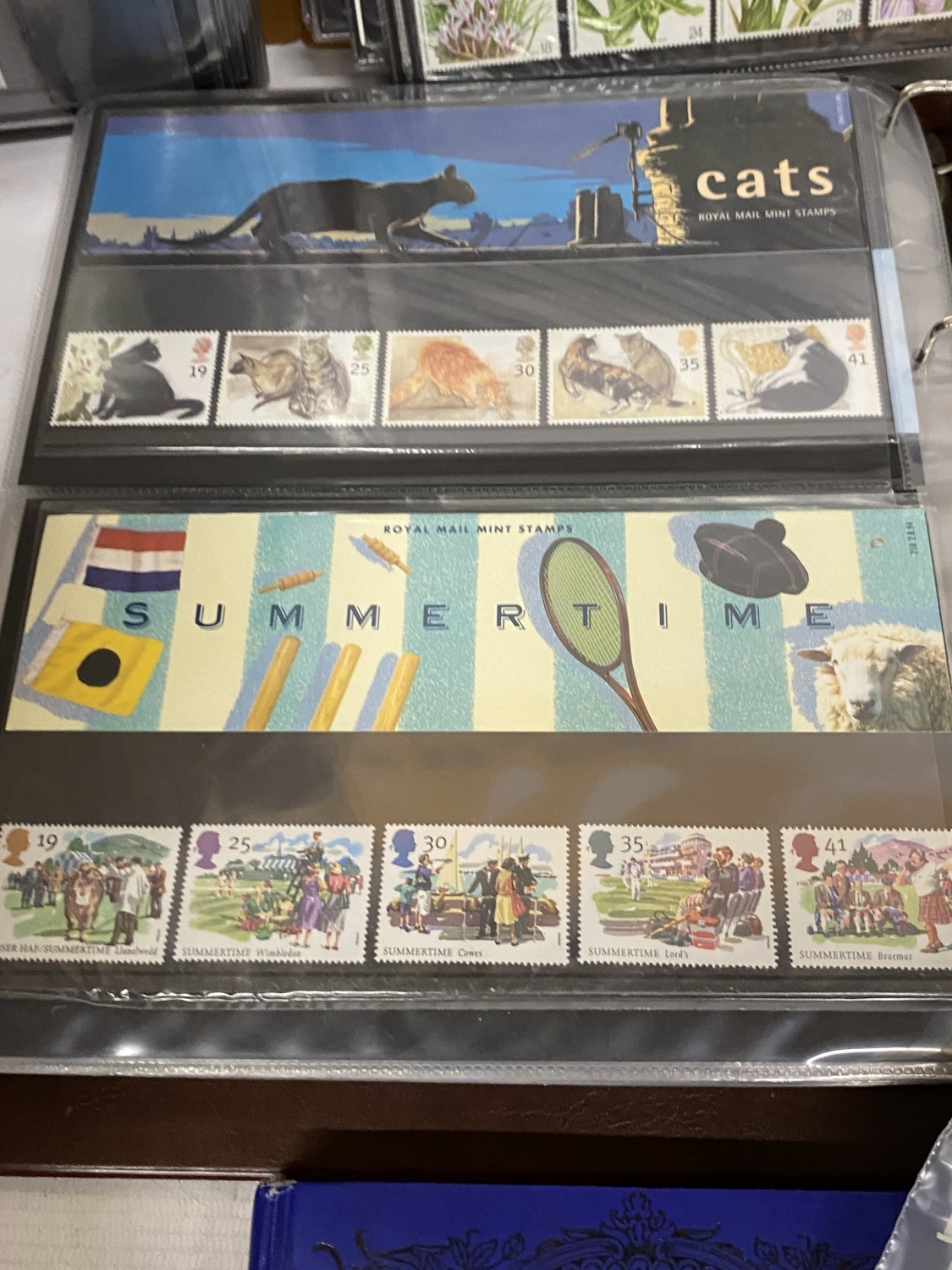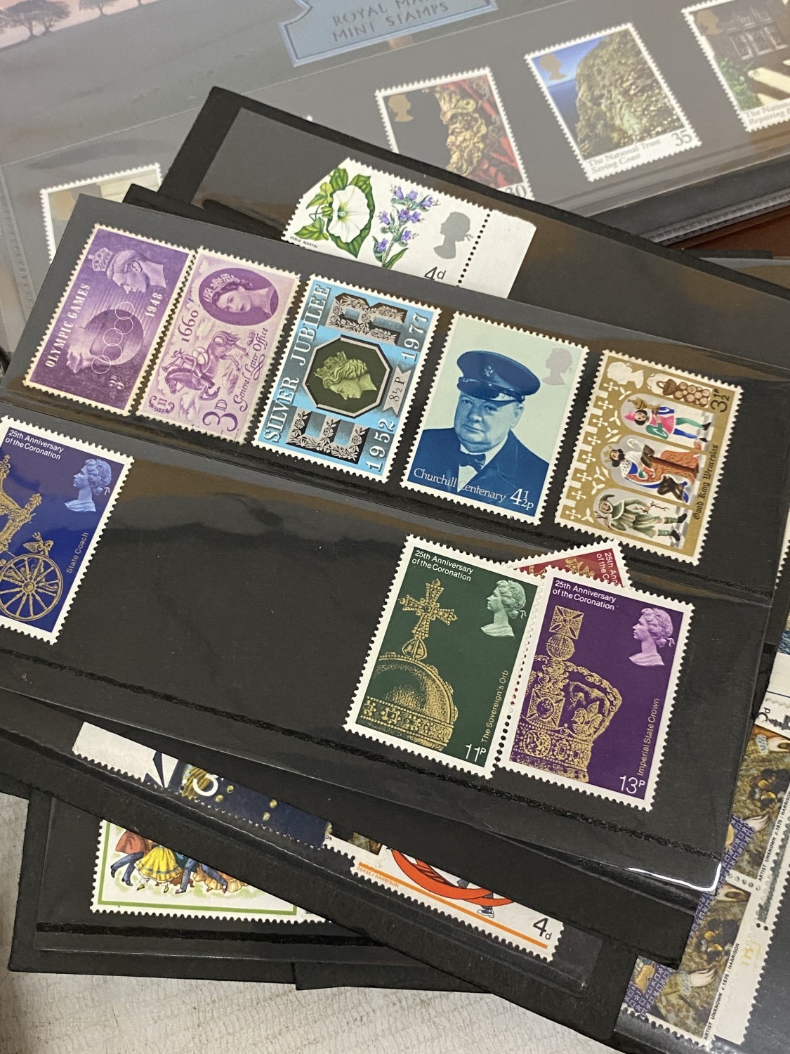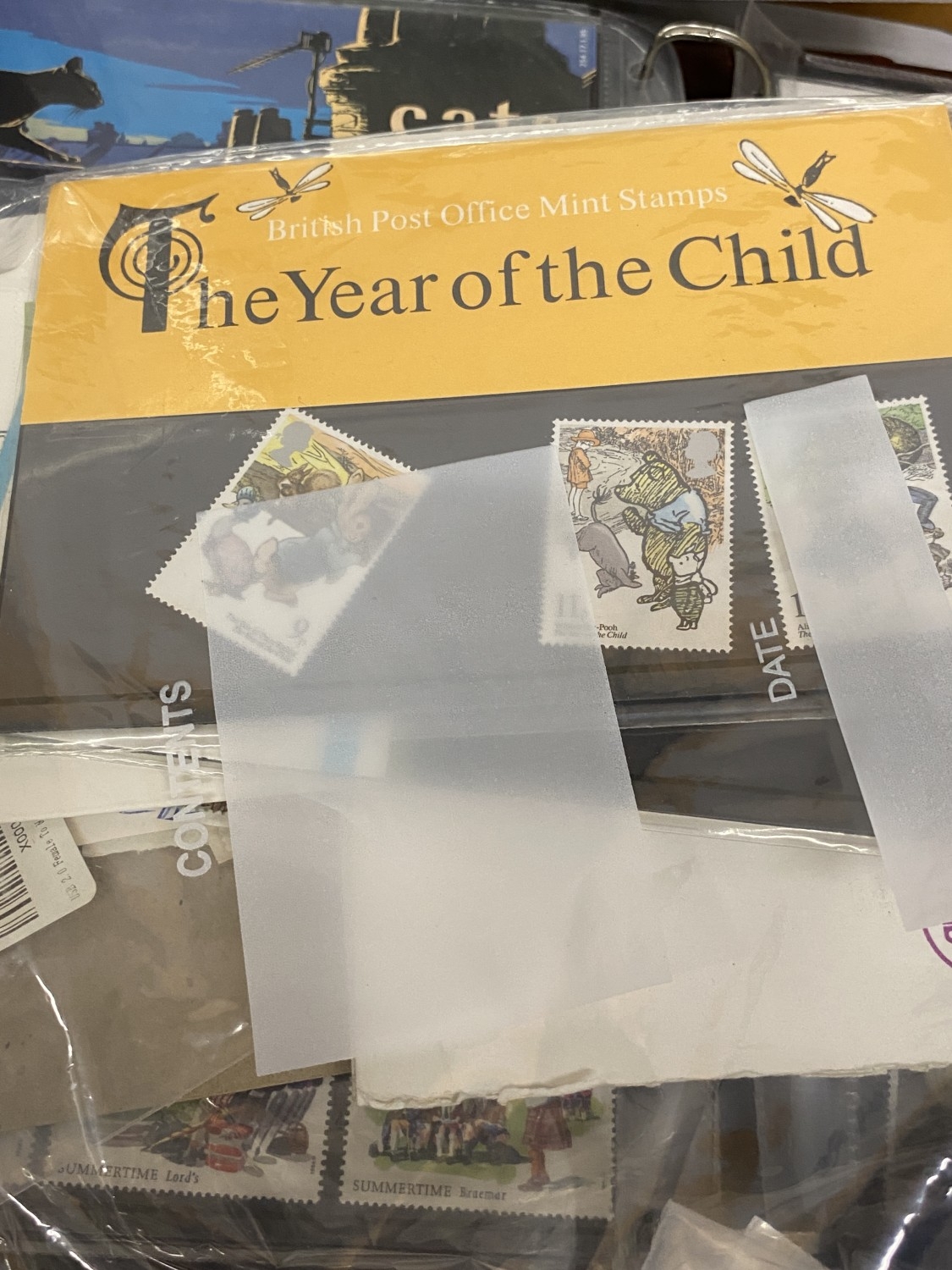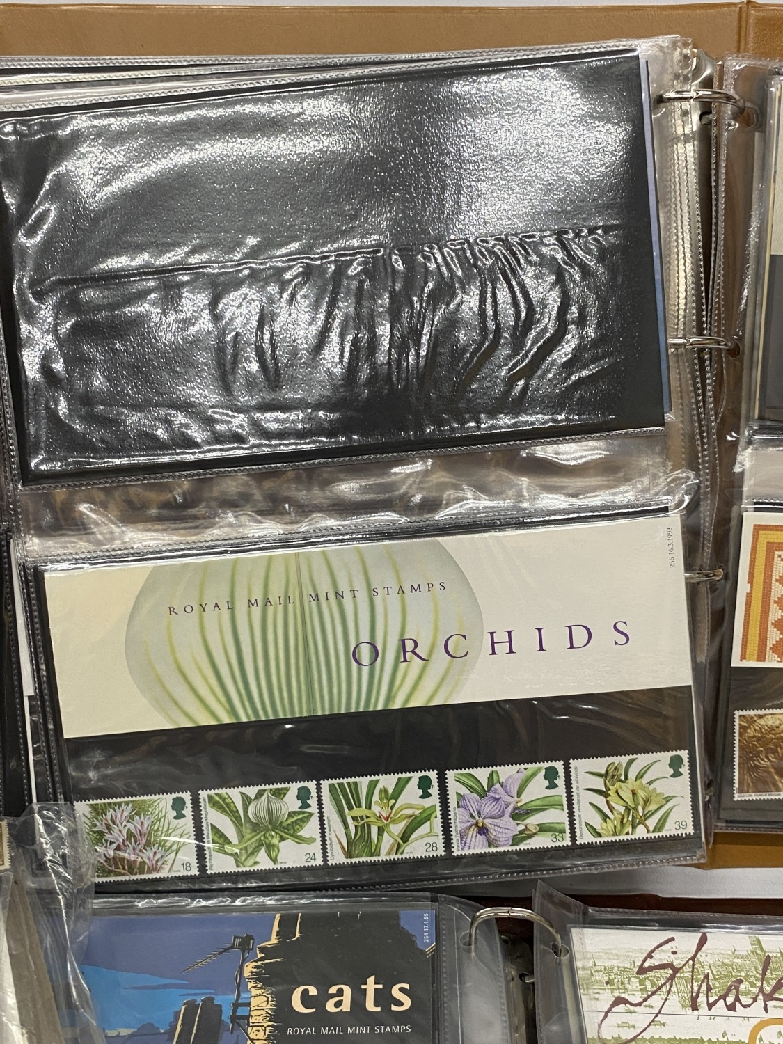A BOX CONTAINING THREE ROYAL MAIL PRESENTATION PACK ALBUMS PLUS A FILE BOX CONTAINING THE LINCOLN POSTAGE STAMP ALBUM PLUS VARIOUS LOOSE