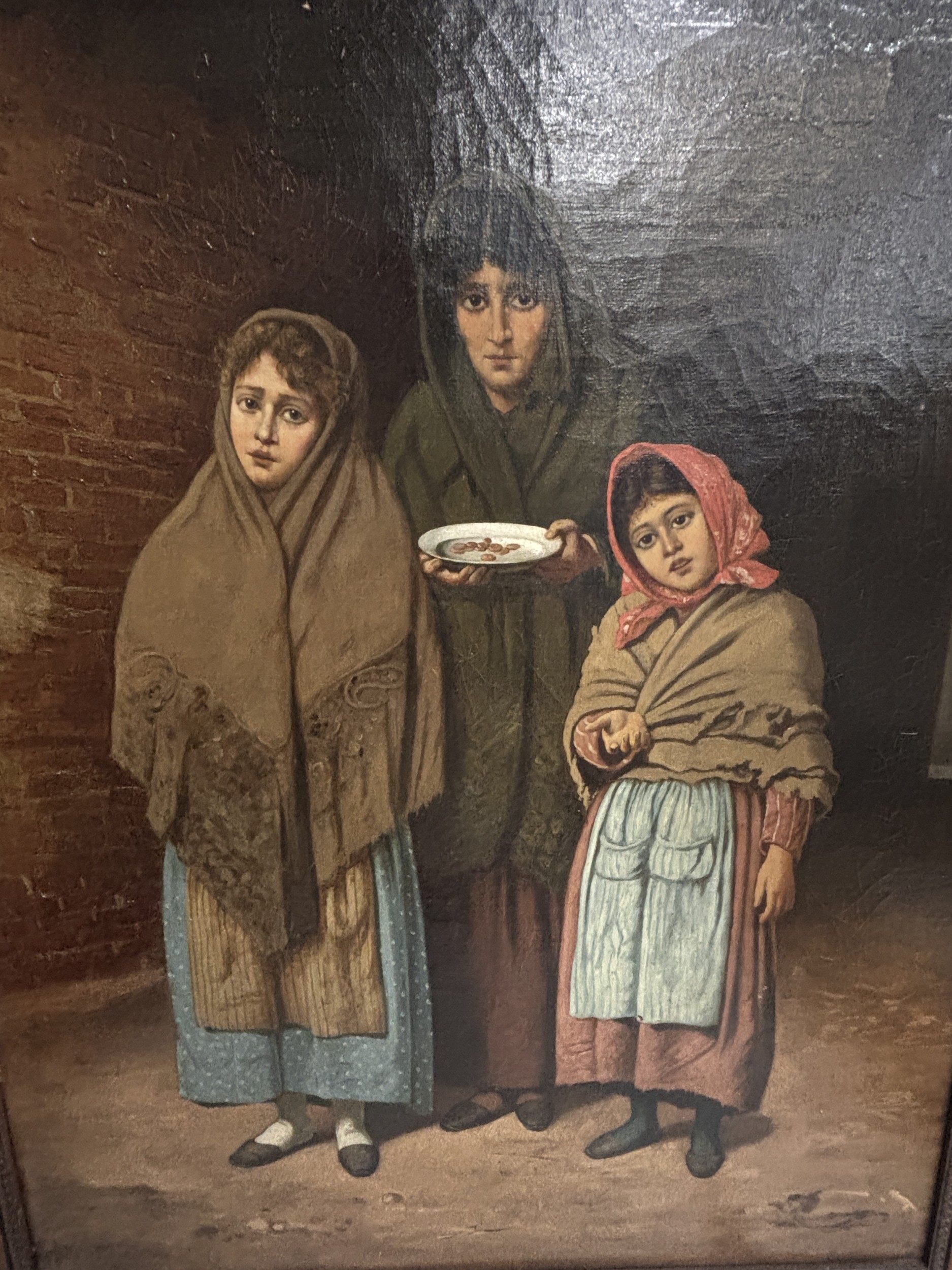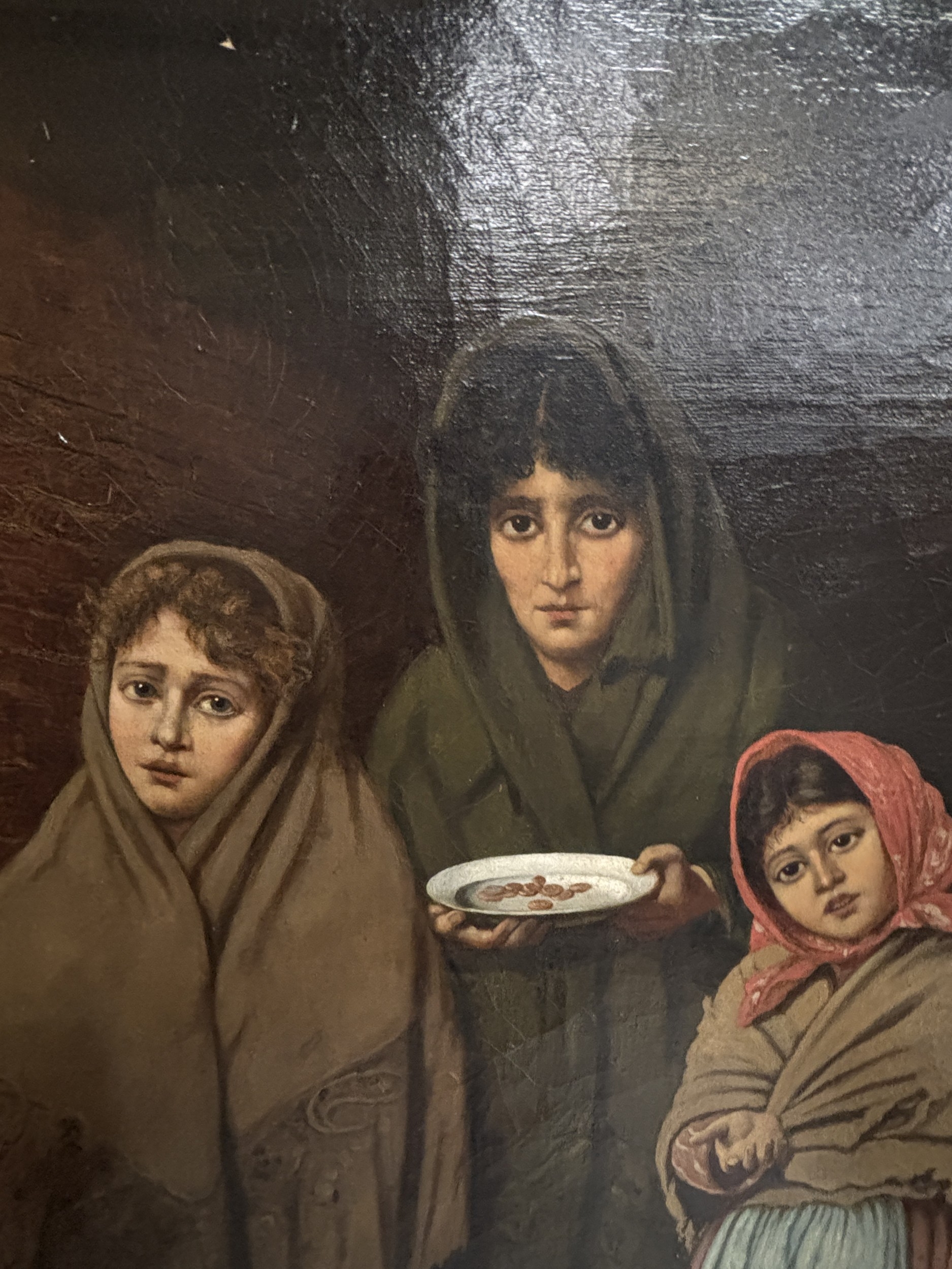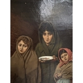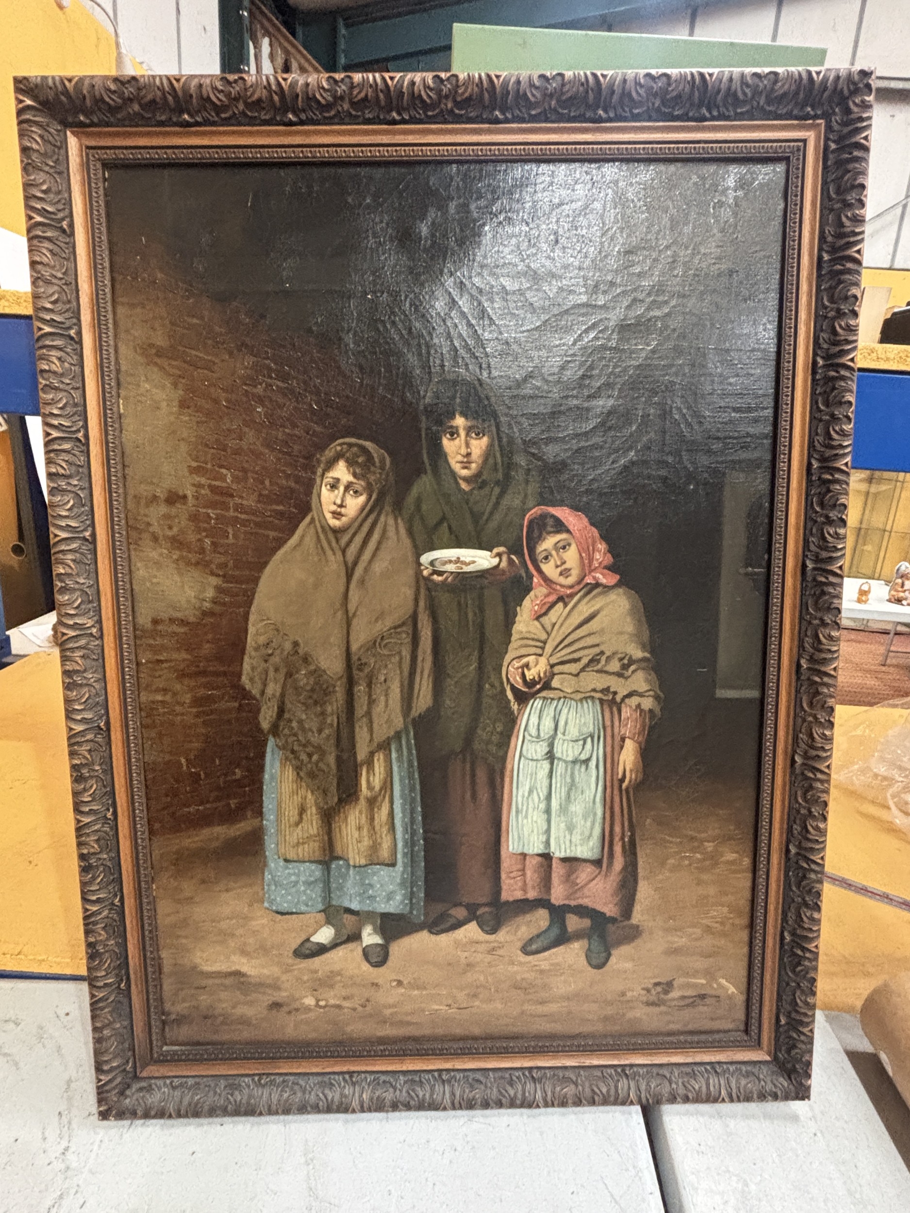 AN ATTRIBUTED TO AUGUSTUS MULREADY LATE 19TH CENTURY OIL ON CANVAS OF A DESTITUTE MOTHER AND CHILDREN, 72CM X 59.5CM