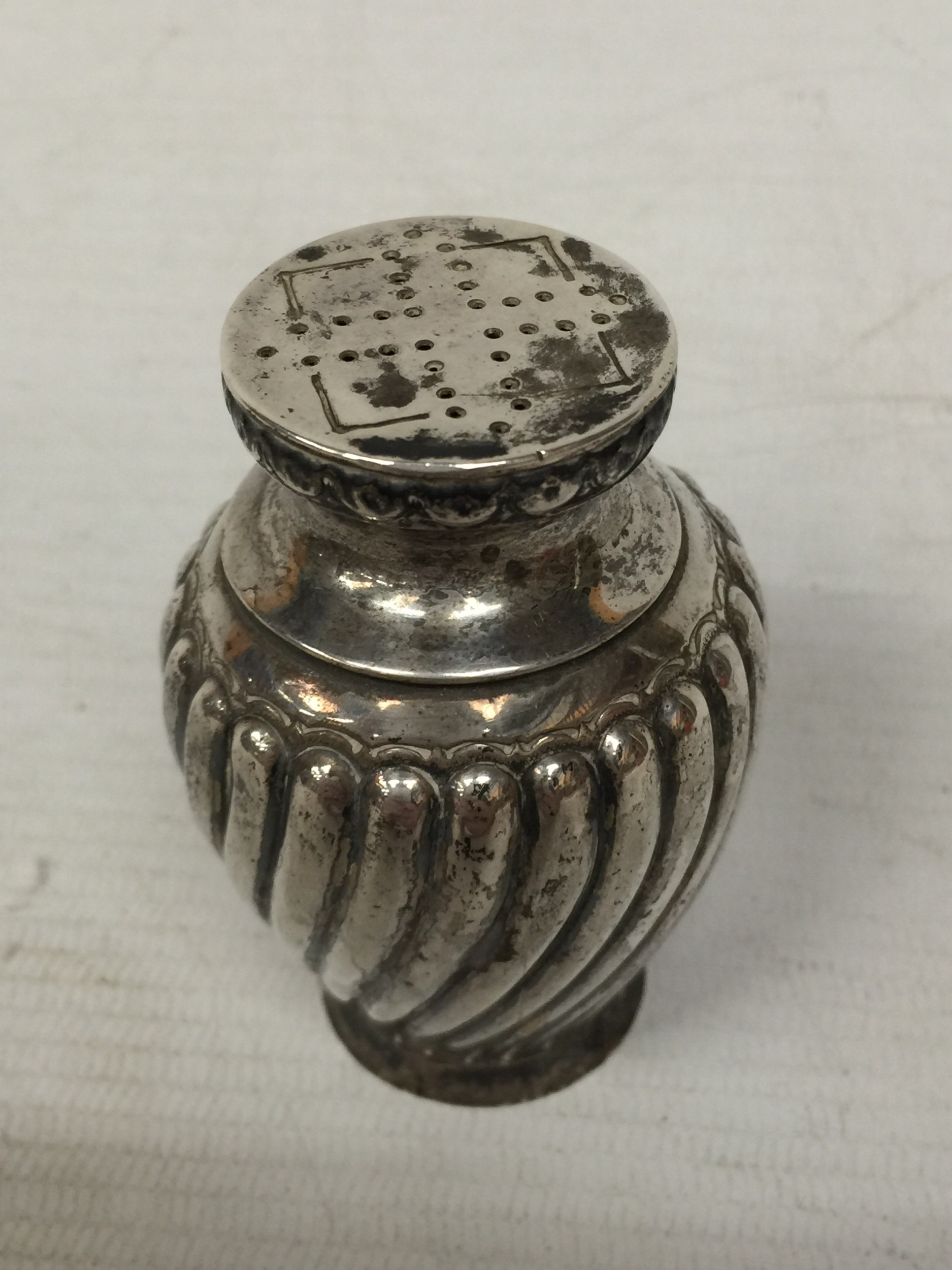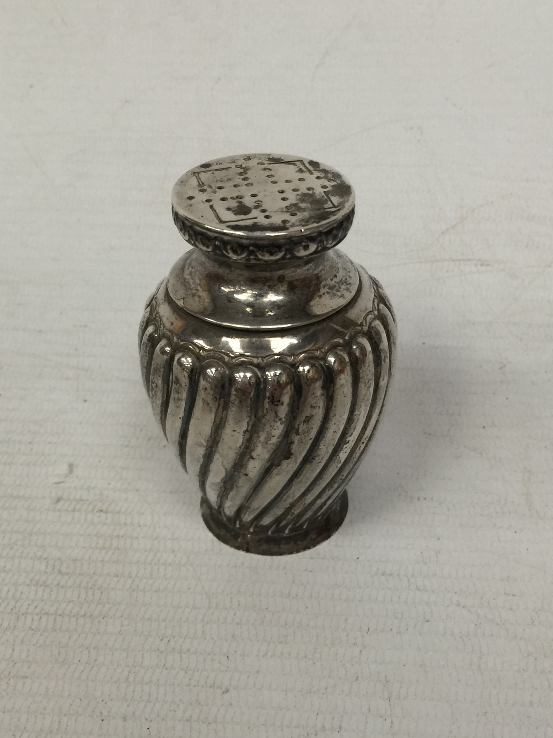 A HALLMARKED LONDON SILVER PEPPERETTE